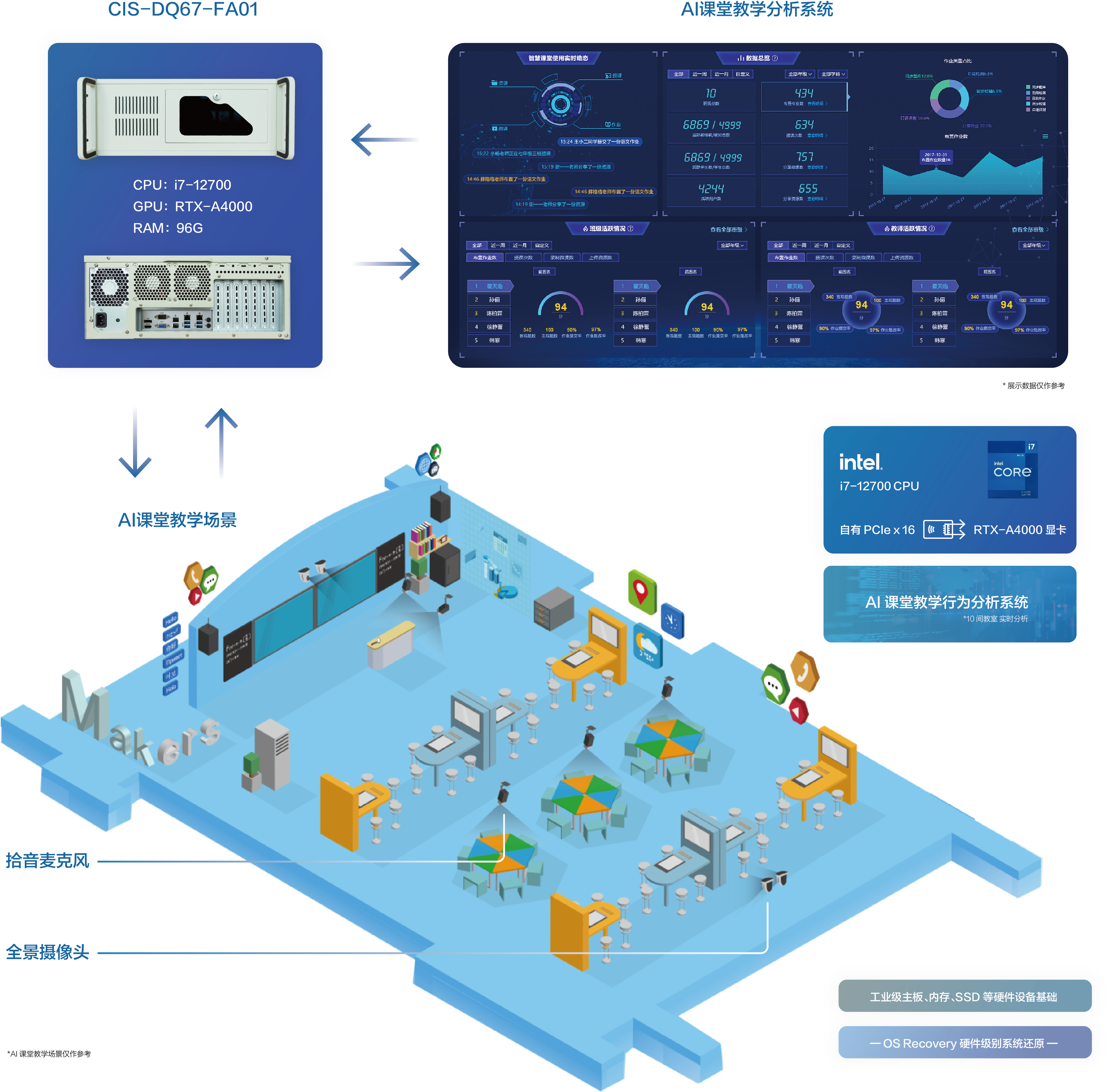 基于用户需求,九州酷游(中国)官方网站提供基于CIS-DQ67-FA01 4U箱体电脑为核心计算单元的AI课堂教学分析解决方案,该方案具备以下优势: